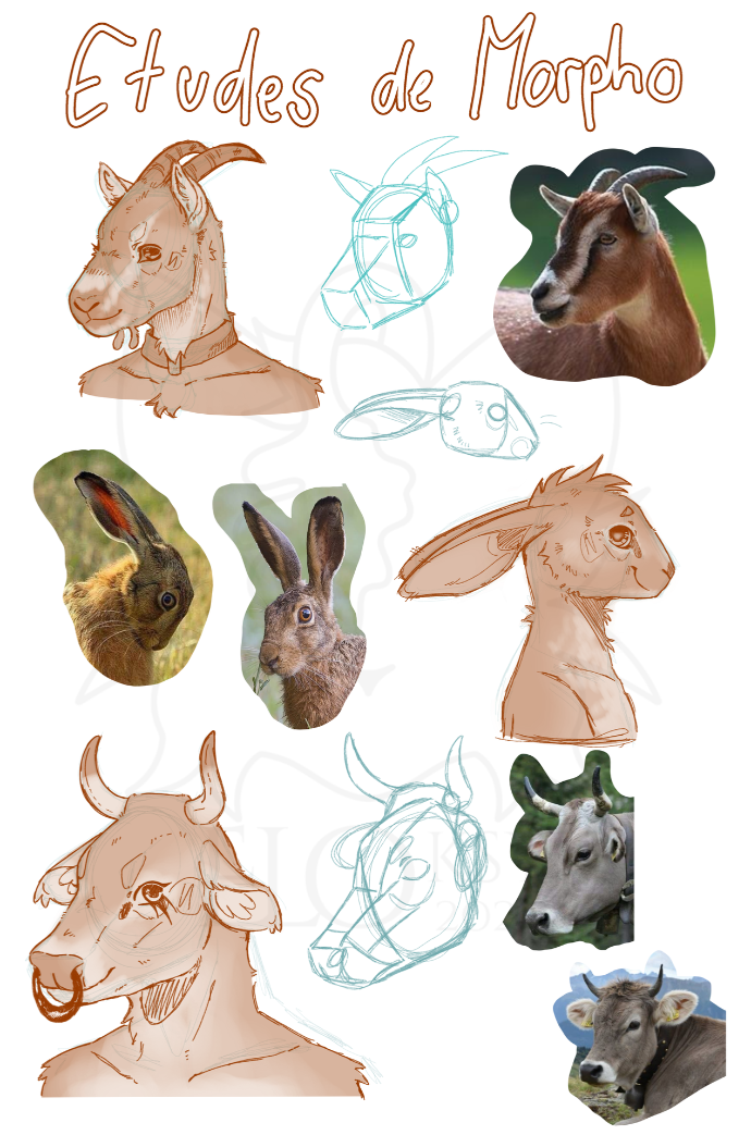 Le but de cette fiche de croquis était d'étudier la morphologie d'espèces que je ne dessine que rarement en les transformant en personnage anthropomorphique.