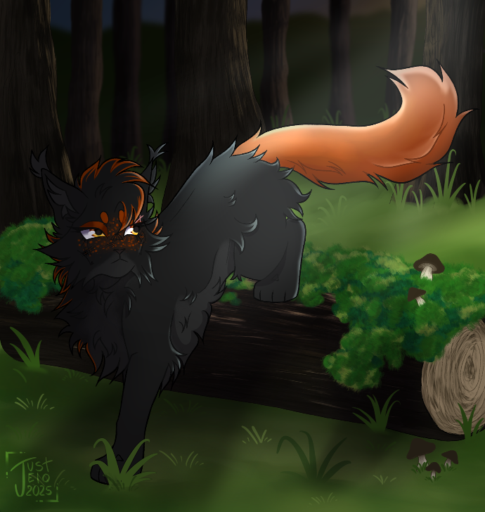 Le but était de représenter l'OC de Draco&cie en interaction avec une foret assez sombre, seule éclairée par un rayon du lumière.