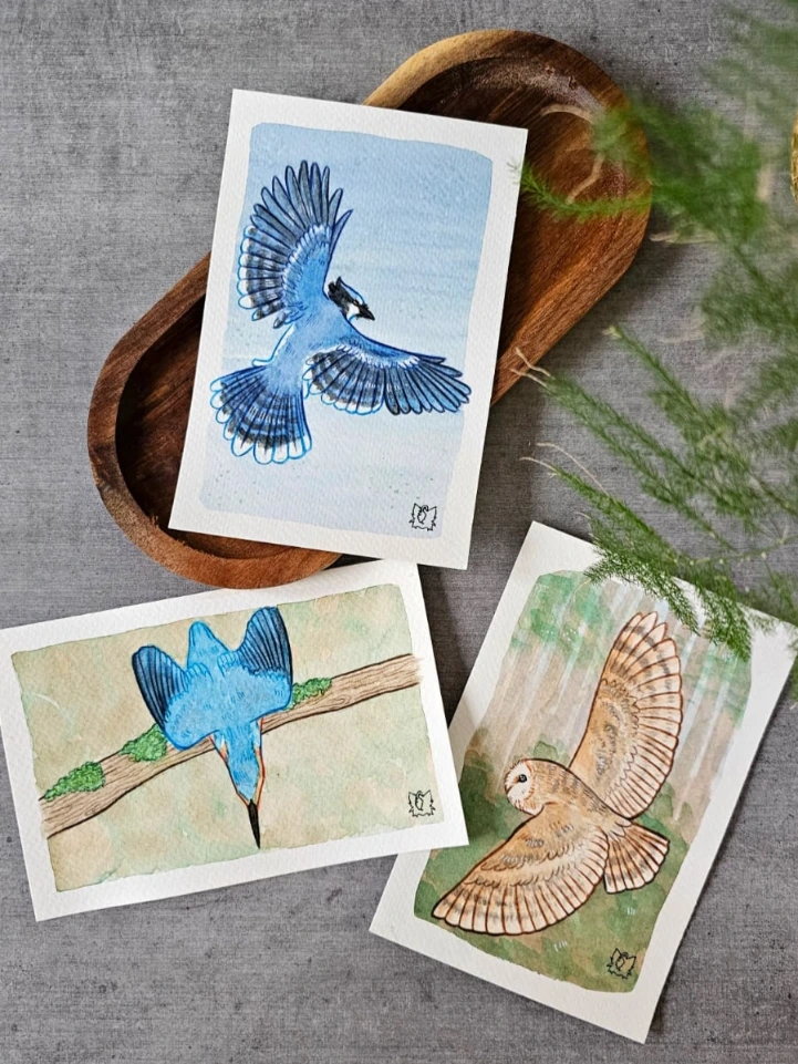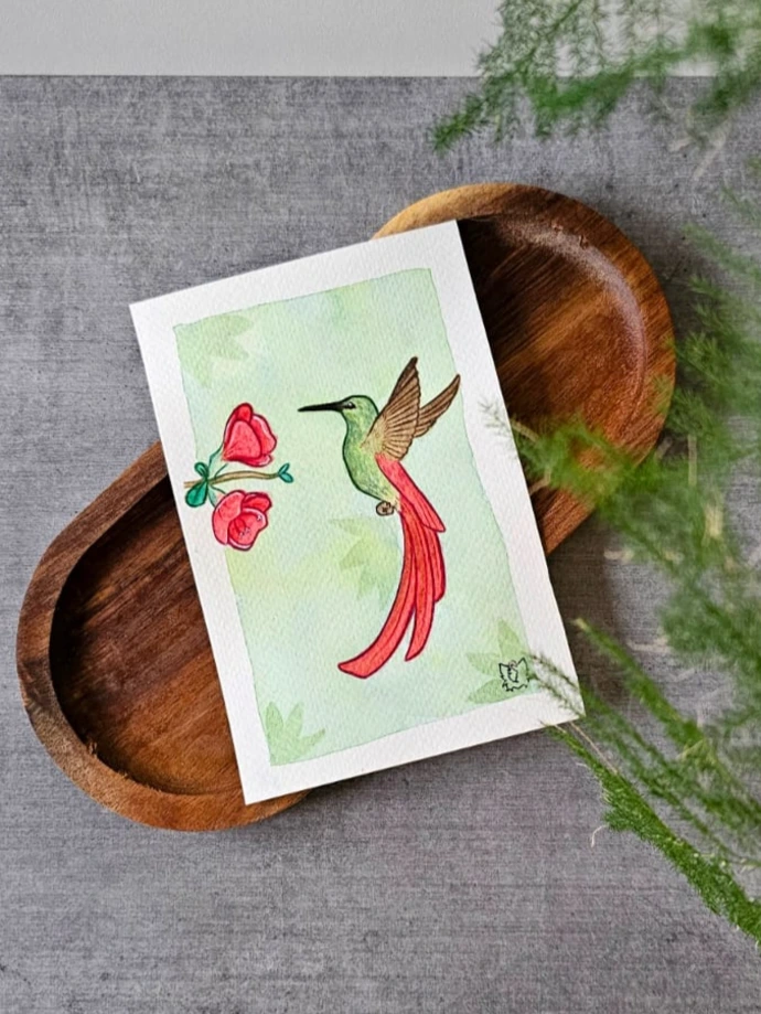 Illustration faite à l'aquarelle sur papier spécialisé. Les différents lines sont fait aux crayons de couleur. Elle sera envoyée protégée, avec ou sans cadre, avec du papier de protection et une enveloppe à bulle. Son format de base est la feuille A5.